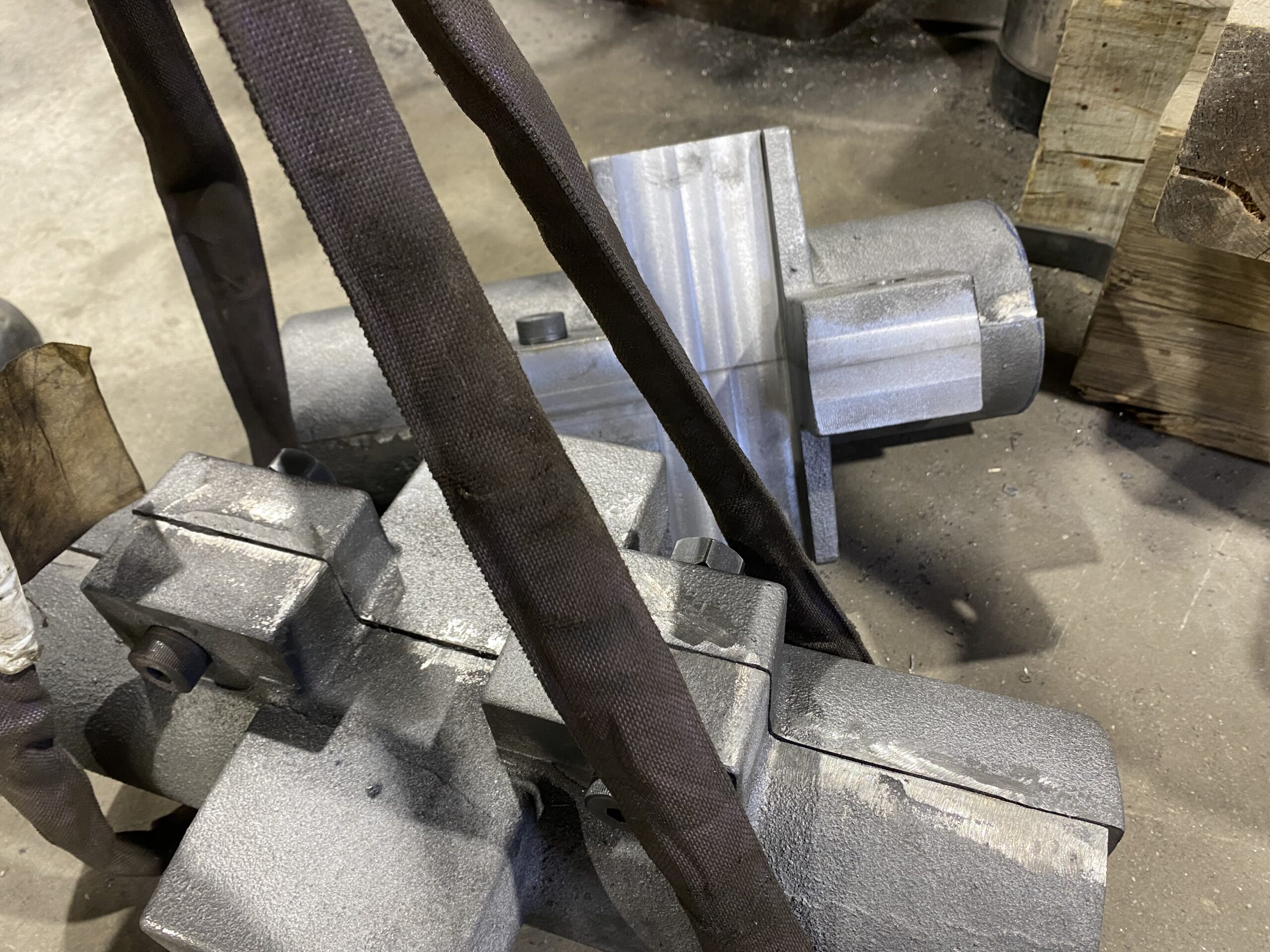 We lowered the frame until the shoes and wedges enclosed the driving boxes. And then we discovered an interference between these components. The shoes and wedges were dropped from the frame and Harold Downey and Gordon Cook removed a few thousandths of an inch from these.