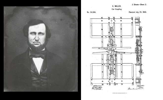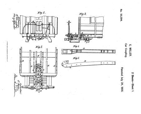 The Miller platform was invented by Ezra Miller and first patented in 1863, with improvements patented in July of 1866. It was designed to prevent telescoping of passenger cars in the event of collision by removing the slack between them.