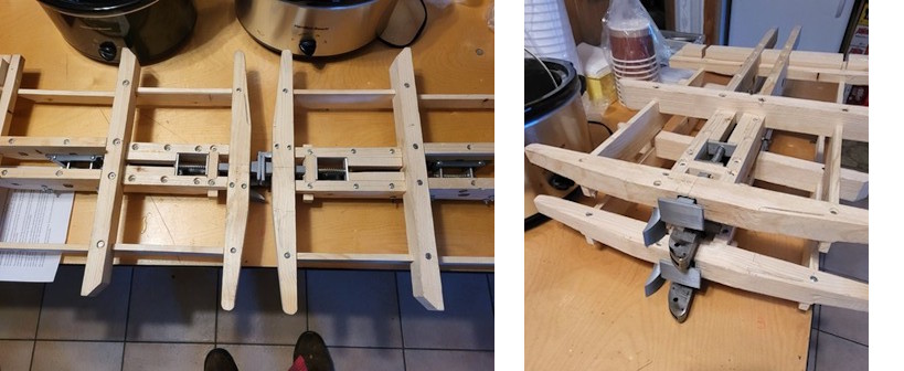 To get a better understanding about how the Miller system worked, quarter scale models of two platforms were constructed by Eric Schade. The “metal” parts were 3D printed in plastic. Once built, the platforms were mounted on “tracks” which allowed the models to be slid together in order to understand coupling and uncoupling. They could also be rotated to represent curved track and be adjusted up and down to represent hills and bumps.
